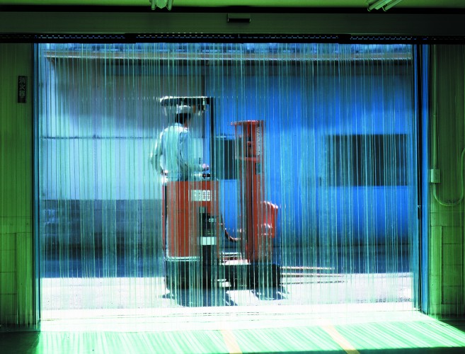 防炎を必要とする工場、倉庫の出入口、間仕切りに。特に火を使う工場や作業場の出入口や間仕切りに最適。