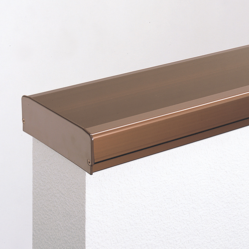 角を出したシャープなデザインはRC造、鉄骨造(ALC)建築物のスタンダード笠木です。 上面に1/30の勾配をつけ雨仕舞を考慮しています。