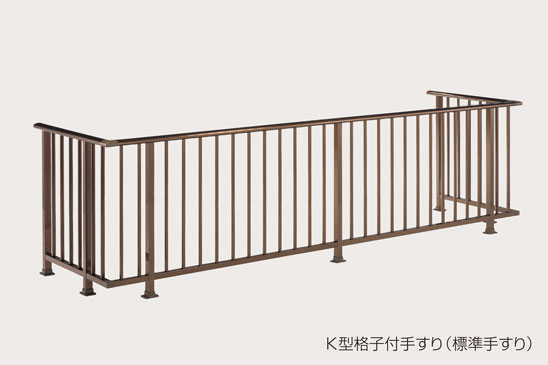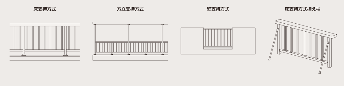 ・壁支持方式:手すりの笠木部・胴縁部それぞれ専用壁支持金具で壁面に固定します。
