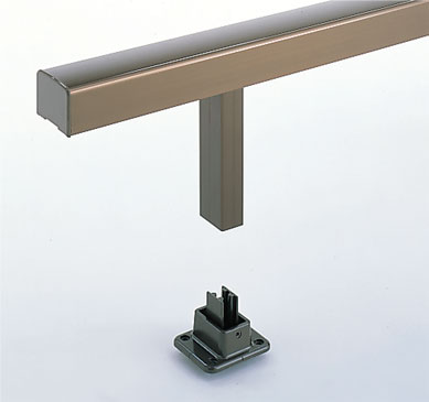 アルミ鋳物金具により、躯体仕上げ面にボルトアンカー、ねじにより取付けます。 アルミ鋳物金具により強度を確保し、高さ方向へのレベル調整が容易です。