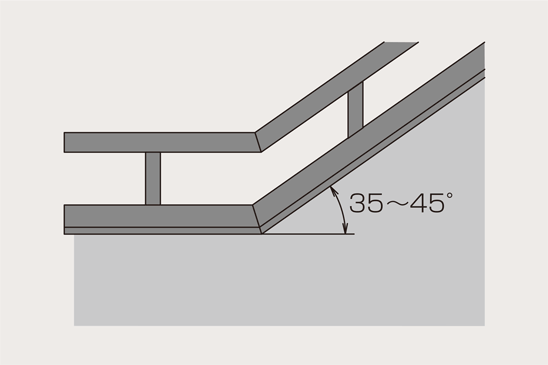 専用金具により35〜45度の範囲で躯体階段部分に対応します。