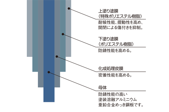 塗装溶融アルミニウム亜鉛合金めっき鋼板(防火設備対応)