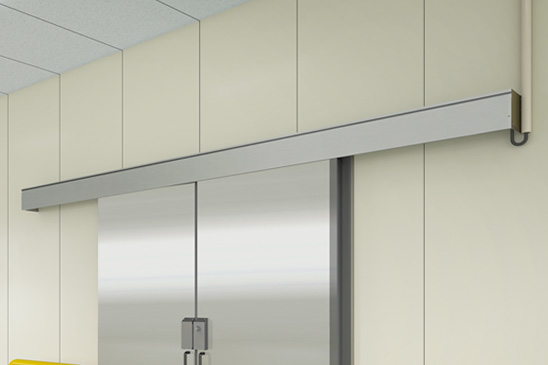 駆動部全体にカバー(無目)を取り付けました。業界初(2025年9月時点)となるモータ、ケーブル、制御装置をカバー(無目)内へ収納し、スッキリとした意匠を実現しました。また戸車部はアルミレール+樹脂コマを採用し、さびを発生させず衛生的です。